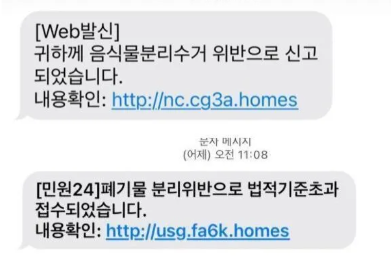 | 「폐기물 관리법 위반 과태료 부과」 스미싱 문자메시지 피해 주의 (0) | 2025.07.02 |