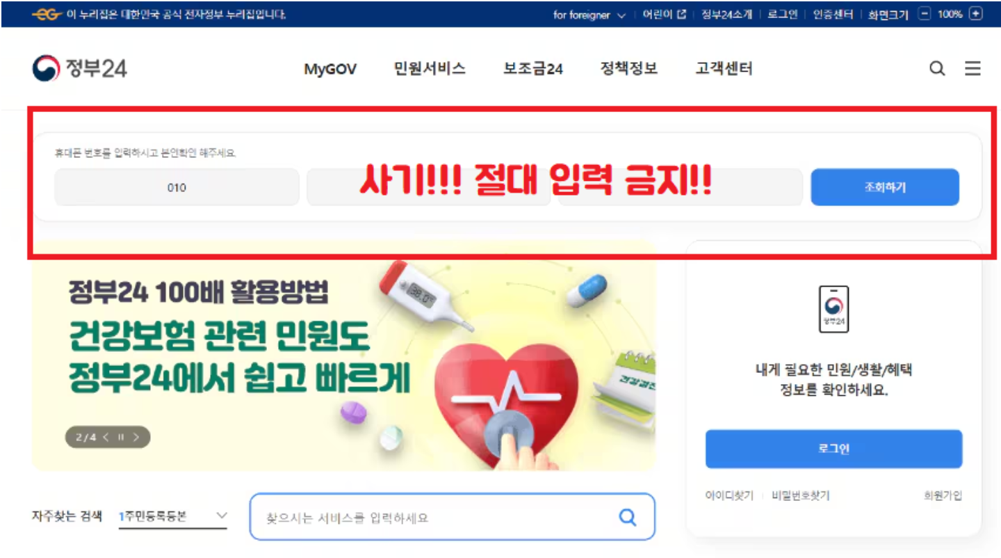 🚫 진짜 정부24에는 '본인확인 버튼'이 없습니다